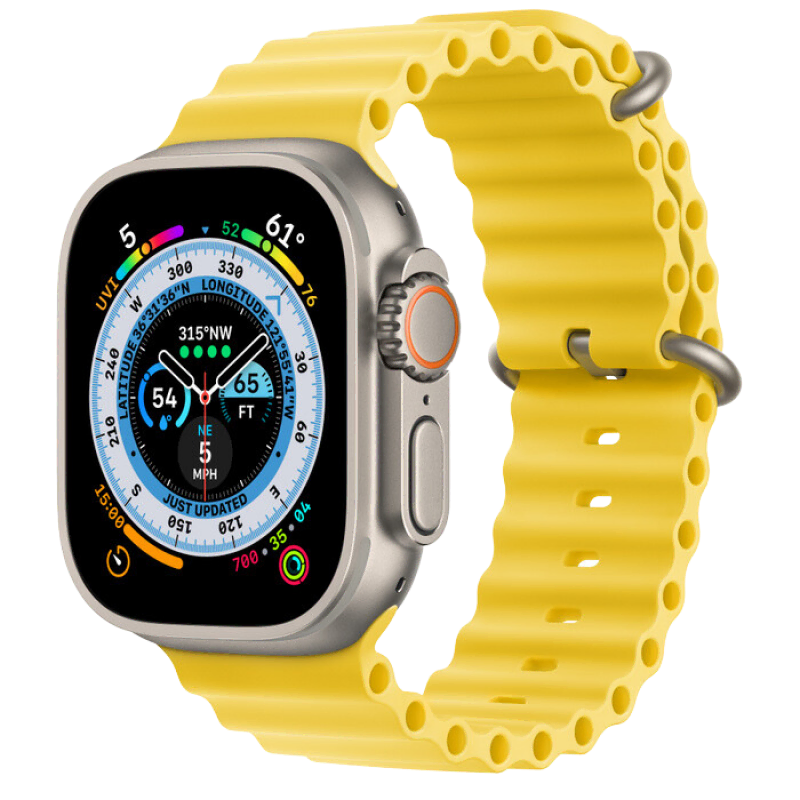 Apple Watch Series Ultra 49mm Titanium Case with Yellow Ocean Band One Size