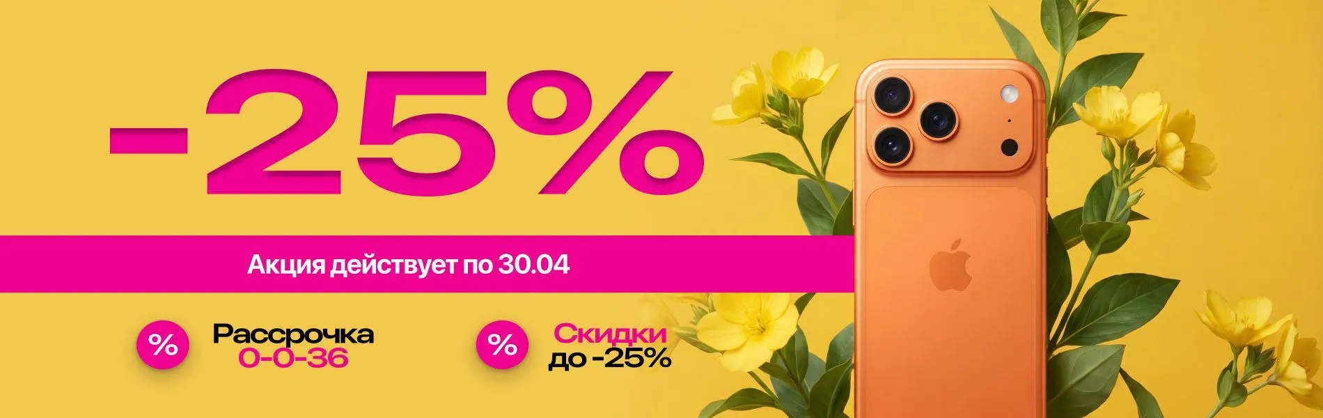 Скидки до -25% и рассрочка 0-0-36 идеальный момент, обновить свой iPhone.